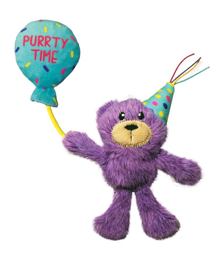This Kong cat toy is a celebratory balloon with crackles to spark hunting instincts. Ideal for capture-and-drag play. Lightweight size entices and rewards batting fun. Celebrate your feline friend's birthday with the Kong Birthday Teddy!